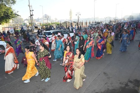 वडोदरा. शहर में आगामी 1 फरवरी को आयोजित होने वाली वडोदरा इंटरनेशनल मैराथन के तहत रविवार को कीर्ति स्तंभ से साड़ी गौरव रन का आयोजन किया गया। इस दौड़ में 4 हजार से अधिक महिलाओं ने उत्साहपूर्वक भाग लेकर परंपरा और फिटनेस का संदेश दिया।विभिन्न प्रकार और रंगों की साड़ियों में सजी महिलाएं जब दौड़ती नजर आईं तो शहर की सड़कों पर मनमोहक और रंग-बिरंगे दृश्य दिखे। करीब 3 किलोमीटर लंबी की इस रन में 16 वर्ष से लेकर बुजुर्ग महिलाएं, महिला पुलिस अधिकारी-कर्मचारी, युवतियां और व्हीलचेयर पर दिव्यांग महिलाएं शामिल हुईं और सबके लिए प्रेरणास्रोत बनीं। सभी महिलाओं ने इस दौरान फिटनेस और स्वस्थ जीवन के लिए संकल्प भी लिया।