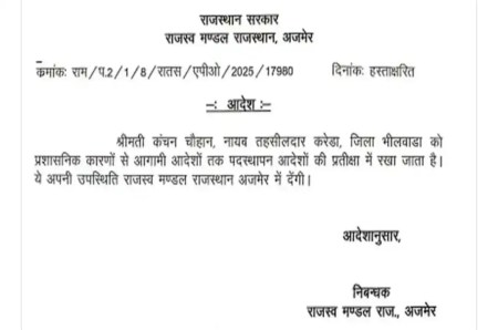 ब्यावर के रहने वाले फणीश कुमार सोनी ने 12 अगस्त को मुख्यमंत्री और आरपीएससी को शिकायत दी। शिकायत में कहा गया कि कंचन चौहान ने फर्जी दिव्यांग प्रमाणपत्र लगाकर नियुक्ति हासिल की। इसके बाद राज्य सरकार के निर्देश पर राजस्व मंडल राजस्थान, अजमेर ने प्रशासनिक कारणों से कंचन चौहान को एपीओ (अटैच्ड पोस्टिंग ऑर्डर) कर दिया। अब उन्हें अगले आदेश तक राजस्व मंडल अजमेर में उपस्थिति दर्ज करानी होगी। यह आदेश मंगलवार शाम को जारी हुआ।