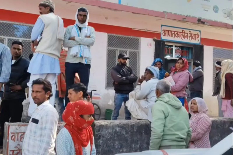 अस्पताल में जमा ग्रामीण व परिजन (फोटो - पत्रिका)