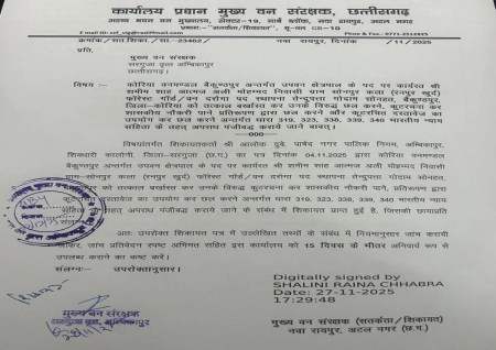 अंबिकापुर। कोरिया वनमंडल के बैकुंठपुर सोनहत में उपवन क्षेत्रपाल के पद पर पदस्थ शमीम शाह द्वारा कूटरचित दस्तावेज के सहारे नौकरी करने की शिकायत भाजपा पार्षद आलोक दुबे ने पीसीसीएफ से की है। उन्होंने बताया है कि शमीम शाह ने अपने भाई के आठवीं की मार्कशीट (Job with fake mark sheet) में अपना नाम चढ़ाकर नौकरी प्राप्त की है। इस पर पीसीसीएफ ने सीसीएफ सरगुजा को मामले की जांच के आदेश दिए हैं। उन्होंने जांच रिपोर्ट 15 दिन में पेश करने कहा है।