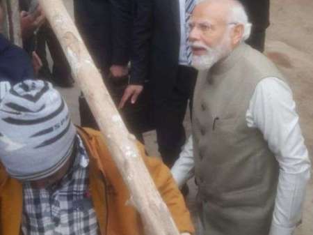 पूरा मुहल्ला एसपीजी और सुरक्षा एजेसिंयों के हवाले हो चुका था। करीब 45 मिनट बाद प्रधानमंत्री नरेंद्र मोदी के काफिले की गाडिय़ां धनीराम मांझी के घर पहुंच गई। धनीराम बताते हैं कि समय के अभाव के कारण प्रधानमंत्री ने उनकी पत्नी से पूछा क्या बनाई हो। जब भोजन करने के लिए कहा गया तो पीएम मोदी ने कहा चाय बना दो।