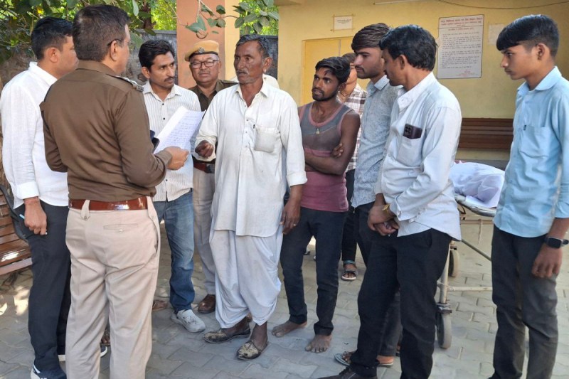 मोर्चरी में परिजनों से जानकारी लेती पुलिस। फोटो- पत्रिका