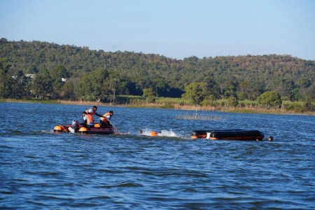 बैतूल। कोसमी डेम में शुक्रवार को बाढ़ आपदा से निपटने की तैयारियों को परखने के लिए जिला आपदा प्रबंधन प्राधिकरण बैतूल द्वारा एक दिवसीय बाढ़ राहत, खोज एवं बचाव मॉकड्रिल का आयोजन किया गया। डेम के पानी में वास्तविक बाढ़ जैसी स्थिति निर्मित कर होमगार्ड और एसडीईआरएफ के जवानों ने लाइव रेस्क्यू अभ्यास किया। मॉकड्रिल के दौरान जवान मोटर बोट और रबर बोट के माध्यम से पानी में उतरे। बाढ़ में डूब रहे लोगों को बचाने का दृश्य हूबहू वास्तविक आपदा जैसा नजर आया। जवानों ने लाइफ जैकेट, रस्सी और फ्लोटिंग उपकरणों की मदद से पानी में फंसे लोगों को सुरक्षित बाहर निकाला। रेस्क्यू के तुरंत बाद प्राथमिक उपचार देने की प्रक्रिया भी दिखाई गई।