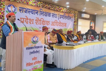 संघ के प्रदेशाध्यक्ष नीरज शर्मा ने कहा कि संगठन शिक्षकों की सेवारत मांगों को लेकर लगातार संघर्ष कर रहा है, लेकिन सरकार की शिक्षा के प्रति नकारात्मक कार्यशैली से शिक्षक वर्ग पीड़ित है। प्रदेश महामंत्री धर्मेंद्र गहलोत ने वेतन विसंगति, सेवारत मांगों की अनदेखी और एसआइआर में बीएलओ की मौत पर सरकार के कठोर रवैए को निंदनीय बताया। अधिवेशन में शिक्षकों ने एक स्वर में शिक्षा व्यवस्था में सुधार, सम्मान और अधिकारों के लिए संघर्ष जारी रखने का संकल्प लिया।