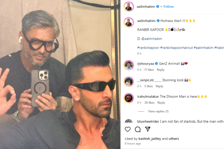 तीनों तस्वीरों में अभिनेता ने सनग्लास लगाया है। हकीम ने कैप्शन में लिखा 'हॉटनेस अलर्ट! रणबीर कपूर…' हकीम द्वारा तस्वीरें पोस्ट किए जाने के बाद से फैंस स्टार के नए लुक पर जमकर तारीफ करते नजर आए। देखते ही देखते कमेंट सेक्शन भर गया। एक फैन ने लिखा ‘धूम 4’। एक अन्य ने लिखा ‘धूम 4’। वहीं, दूसरे ने लिखा ‘क्या यह धूम के लिए है’।