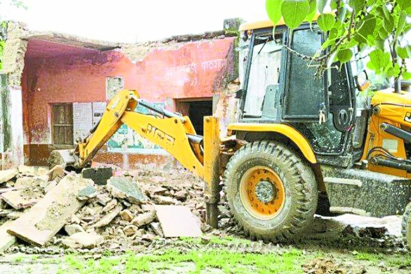 बूंदी. जर्जर स्कूल को ध्वस्त करती जेसीबी ।