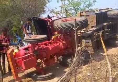 उल्टी दिशा से मुड़ा ट्रैक्टर, पलटी ट्रॉली ने कुचला