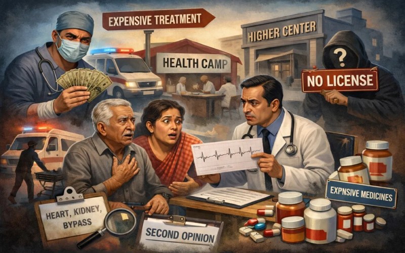 हाल ही में जिले के एक रविवार शिविर का मामला सामने आया, जहां एक मरीज को बायपास सर्जरी की जरूरत बताकर बड़े शहर के निजी अस्पताल रेफर कर दिया गया। परिजनों ने जब दूसरे चिकित्सक से परामर्श लिया तो बीमारी सामान्य पाई गई। यदि समय रहते सेकंड ओपिनियन नहीं लिया जाता, तो मरीज अनावश्यक इलाज और भारी आर्थिक बोझ के जाल में फंस सकता था।