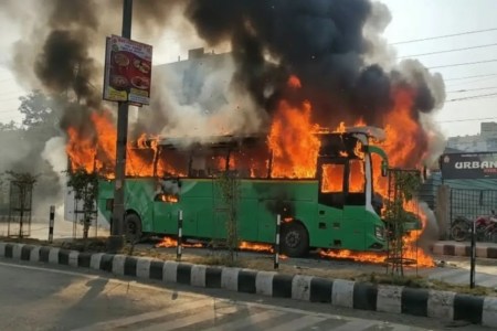 Massive Fire:चलती बस आग का गोला बन गई। इससे लोगों में हड़कंप मच गया था। ये हादसा देहरादून में गुरुवार दोपहर को हुआ। तमिलनाडु के 40 छात्र-छात्राओं को भारत भ्रमण पर लेकर निकली चलती बस में अचानक आग लग गई थी। गुरुवार को एक बस शिमला बाईपास स्थित सेंट ज्यूड चौक के पास से गुजर रही थी। तभी अचानक उसमें से धुंए का गुबार उठने लगा था। इससे बस में सवार छात्र-छात्राओं में चीख-पुकार मच गई। बस के भीतर अफरा-तफरी फैल गई थी। एक मिनट के भीतर ही बस सवार 40 छात्रों सिहत 45 लोगों को बाहर निकाल लिया गया था। देखते ही देखते बस से आग की भयानक लपटें उठने लगी थी। इसी दौरान सीपीयू निरीक्षक नरेश कुमार भौर्याल पूरी टीम के साथ मौके पर पहुंच गए थे। उसके बाद दमकल के दो वाहनों ने पानी की बौछारें शुरू कर आग पर काबू पाया। तमिलनाडु के कॉलेज छात्रों की उम्मीदों को देहरादून में बड़ा झटका लगा। गुरुवार दोपहर बस में आग लगी तो बस के केबिन में रखे छात्रों के बैग जल गए। बैग में छात्रों के कपड़े और दैनिक उपयोग का सामान था। सभी छात्रों ने हादसे के बाद अपने परिजनों को सकुशल होने की जानकारी दी।