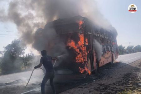 It is noteworthy that the AC sleeper bus travelling from Jaisalmer to Jodhpur caught fire at 3:30 PM on Tuesday. The bus turned into a ball of fire in approximately seven minutes, leaving passengers no chance to react. Eyewitnesses had reported that a short circuit in the bus battery caused the AC gas to spread, leading to the fire escalating rapidly. The bus had a narrow design, and the emergency exit was only at the rear, whereas it should have been on both sides. The new bus was fully filled with AC gas.