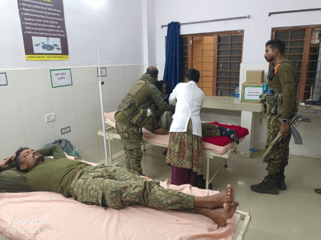 Following the elimination of 22 Naxalites in Bijapur district on the 20th, the Naxalites carried out this attack as a retaliatory measure. However, their plan was thwarted when the explosion occurred 10 meters before the vehicle. The shockwave from the blast injured two STF personnel, including the driver. The front of the vehicle was damaged. After receiving initial treatment at the Madded Primary Health Centre, the injured were sent to the Bijapur District Hospital for better treatment.