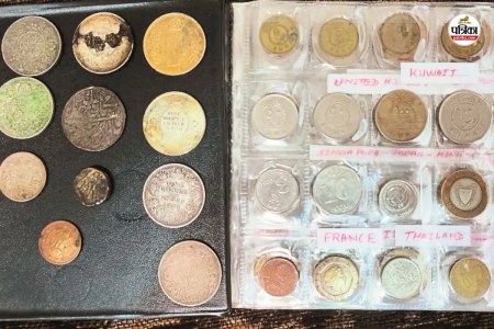 Mukesh Shrimal also has a collection of foreign coins. This includes US dollars, Kuwaiti and Iraqi Fils, French Francs, Iranian Dinars, Som from Kyrgyzstan, Kazakhstan, Uzbekistan, Malaysian and Kenyan Cents, Italian Euros, Japanese Yen, Australian Dollars, Swedish Krona, Bahraini Fils, UAE Dirhams, Indonesian Rupiah, a Swiss Franc from 1977, an Iraqi Dinar from 1981, Pakistani and Nepali Rupees, Bangladeshi Taka, and UK Pounds.