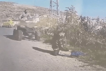In the video, this soldier is seen driving an ATV (a type of open, four-wheeled vehicle) with a rifle slung on his back, approaching the Palestinian man. The Israeli Army issued a statement on the matter, saying that they have received a video in which an armed individual is seen running over a Palestinian citizen with a vehicle. The Israeli Army stated in its release that the individual was a reservist soldier and his military service has been immediately terminated following the emergence of the incident.
