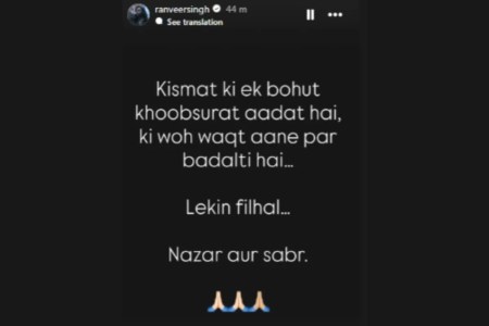 सोमवार यानी 15 दिसंबर को रणवीर ने अपनी इंस्टाग्राम स्टोरी पर 'धुरंधर' का एक डायलॉग शेयर किया, जिसमें आर. माधवन का किरदार कहता है, "किस्मत की एक बहुत खूबसूरत आदत है, कि वो वक्त आने पर बदलती है।" इसके आगे एक्टर ने लिखा, "लेकिन फिलहाल…नजर और सब्र।"