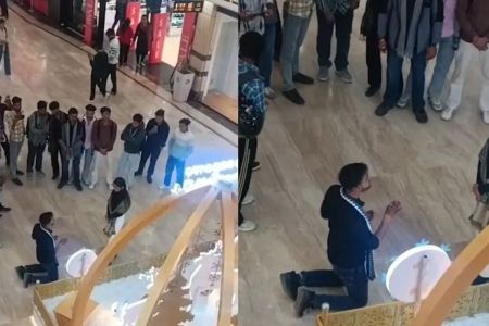 गाजियाबाद : सोशल मीडिया पर इन दिनों एक अनोखा प्रपोजल वीडियो तेजी से वायरल हो रहा है, जो उत्तर प्रदेश के गाजियाबाद स्थित गौर सेंट्रल मॉल (राजनगर) का है। वीडियो में एक युवक अपनी प्रेमिका को सार्वजनिक रूप से घुटनों पर बैठकर प्रपोज करता है, और जैसे ही लड़की 'हां' कहती है, वह उसकी मांग में सिंदूर भर देता है और मंगलसूत्र पहना देता है। इसे देखकर मौके पर मौजूद लोग तालियां बजाते और चीयर करते नजर आ रहे हैं।