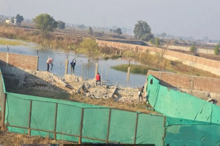 ग्वालियर. हाईकोर्ट की सख्ती के बाद न्यूट्रिक बिल्डिर (नियोटेरिक) आरडी गुप्ता की टेकनपुर के पास बझेरा पंचायत स्थित टाउनशिप की दीवार पर गुरुवार को हथौड़े चले। यहां नहर की जमीन पर अतिक्रमण निकला है, बिल्डर ने सरकारी जमीन पर अतिक्रमण कर बाउंड्रीवॉल बनवा दी थी। वहीं दूसरी ओर किसानों ने टाउनशिप की एनओसी निरस्त कराने के लिए हाईकोर्ट में नई याचिका दायर की है। क्योंकि बिल्डर को अनुमति शर्तों के साथ दी गई थी। बारिश का पानी निकाल कर देंगे, बिल्डर ने मनमाना रवैया अपनाया। सरकारी नहर को नष्ट कर दिया और बारिश के पानी भी रोक दिया। जिससे किसानों को ङ्क्षसचाई के लिए पानी नहीं मिल रहा था। साथ ही बारिश का पानी भी खेतों से नहीं निकल पाया।