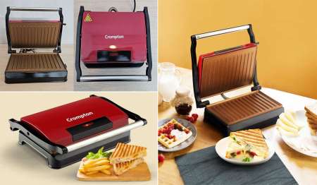 घर में जब ब्रेक फ़ास्ट बनाना हो या फिर कुछ हल्का फुल्का खाने का मन करें तो सैंडविच खाना काफी लोगों को पसंद हैं। अक्सर लोग बाहर रेस्टोरेंट में जाना पसंद करते हैं लेकिन अब आपको सैंडविच खाने के लिए रेस्टोरेंट जाने की जरूरत नही पड़ेगी, बल्कि घर पर ही आप इसे आसानी से बना सकते हैं। Crompton का सैंडविच मेकर आपका ये काम आसानी से कर देगा। क्रॉम्पटन क्विकसर्व सैंडविच मेकर में आप मिनटों में मोटी सैंडविच तैयार कर सकते हैं, इतना ही नहीं आप पनीर टिक्का भी बना सकते हैं।