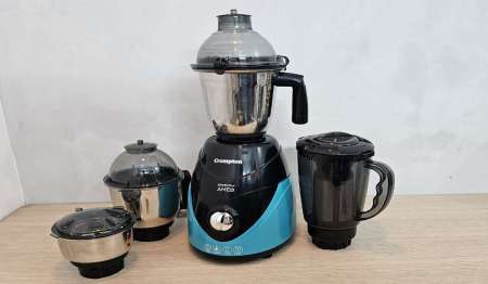 किचन में सबसे ज्यादा इस्तेमाल मिक्सर ग्राइंडर भी होने लगा है। क्रॉम्पटन ब्रांड ((AMEO-4JARS)) का 4 जार वाला मिक्सर ग्राइंडर आपके घर के लिए बेस्ट ऑप्शन साबित हो सकता है। इसमें आपको 3 स्टेनलेस स्टील जार और 1 जूसर जार मिलता है। डेली यूज़ के लिए यह काफी अच्छा है। इसकी पावरफुल मोटर काफी अच्छे से काम करती है। बरनद क दावा है कि यह 100% Grinding करता है और दूसरे ब्रांड्स के मिक्सर ग्राइंडर की तुलना में 10% टाइम की बचत करता है। इसके ब्लेड्स काफी शार्प हैं और तेजी से काम करते हैं।