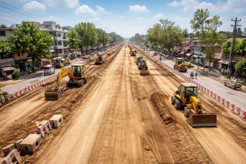 18 मीटर चौड़ी सड़क का निर्माण जारी, मेडीकेयर हॉस्पिटल तक 60 फीट चौड़ी होगी सड़क