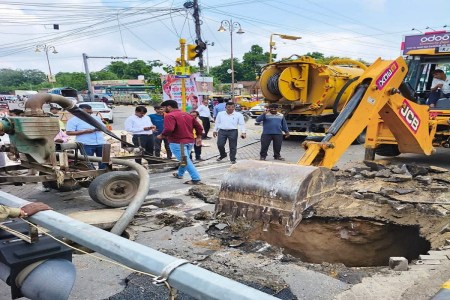 शहर के सबसे व्यस्त रास्तों में से एक, एमआइ रोड पर स्थित गवर्नमेंट हॉस्टल चौराहे पर अचानक सड़क धंस गई। गनीमत रही कि इस घटना में कोई हताहत नहीं हुआ, क्योंकि सुबह के समय यातायात कम था। स्थानीय लोगों ने सड़क पर एक छोटा गड्ढा देखा और तुरंत हैरिटेज नगर निगम के अधिकारियों को इसकी सूचना दी। निगम और ट्रैफिक पुलिस ने तुरंत मौके पर पहुंचकर बैरिकेड्स लगाए और यातायात को दूसरे रास्तों पर मोड़ा। अधिकारियों के अनुसार, सड़क के नीचे से गुजर रही 600 एमएम की सीवर लाइन में रिसाव के कारण यह घटना हुई। रिसाव की वजह से नीचे की मिट्टी बह गई और करीब 30 फीट गहरा और 15 फीट चौड़ा गड्ढा बन गया। किशनपोल जोन की टीम ने मौके पर पहुंचकर मरम्मत का काम शुरू कर दिया था, लेकिन दिन भर हुई बारिश के कारण काम पूरा नहीं हो पाया। एक्सईएन एल.एन. मीणा ने बताया कि जल्द मरम्मत का काम पूरा कर लिया जाएगा।