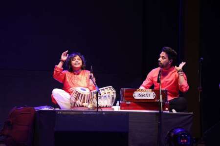 कार्यक्रम की शुरुआत रिम्पा शिवा ने अपनी सोलो तबला परफॉर्मेंस से की। दुनियाभर में परफॉर्म कर चुकीं रिम्पा ने जैसे ही तबले पर पहली थाप दी, माहौल में फर्रुखाबाद घराने का रस घुल गया। उन्होंने अपनी हथेलियों का जादू बिखेरते हुए दर्शकों को मंत्रमुग्ध कर दिया।