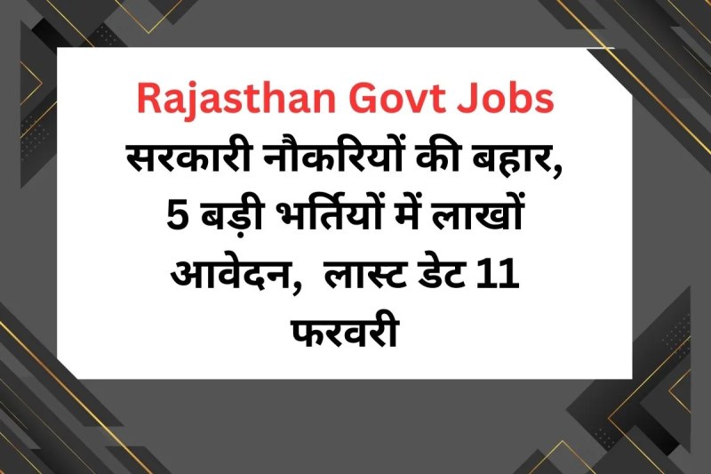 राजस्थान में सरकारी नौकरी की तैयारी कर रहे युवाओं के लिए फरवरी महीना सुनहरा अवसर लेकर आया है। राजस्थान कर्मचारी चयन बोर्ड (RSSB) की विभिन्न भर्तियों में लाखों अभ्यर्थी ऑनलाइन आवेदन कर रहे हैं। फॉरेस्टर, महिला पर्यवेक्षक, कृषि पर्यवेक्षक, लिपिक ग्रेड-द्वितीय/कनिष्ठ सहायक और लैब असिस्टेंट जैसी पांच बड़ी भर्तियों के लिए आवेदन प्रक्रिया जारी है। इन पदों पर कुल मिलाकर 10 लाख से अधिक आवेदन अब तक भरे जा चुके हैं, जिससे युवाओं में सरकारी सेवा के प्रति बढ़ती रुचि साफ दिखाई दे रही है।