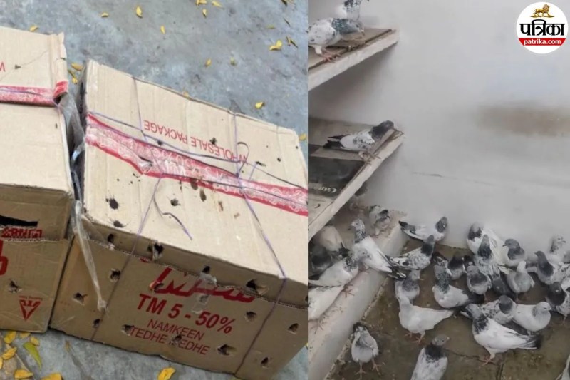 दो कार्टन में ठूंस-ठूंसकर भरे 42 सफेद कबूतर मुक्त, तीन गिरफ्तार (फोटो- पत्रिका)