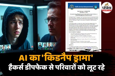 AI kidnapping scam: जयपुर. अमरीकि फेडरल ब्यूरो ऑफ इन्वेस्टिगेशन (FBI ) ने 5 दिसंबर 2025 को एक बड़ा अलर्ट जारी किया है, जिसमें चेतावनी दी गई कि साइबर हैकर्स आर्टिफिशियल इंटेलिजेंस (AI ) की मदद से 'वर्चुअल किडनैपिंग' स्कैम चला रहे हैं। ये अपराधी सोशल मीडिया से चुराई गई फोटोज को एआइ्र से एडिट कर 'प्रुफ ऑफ लाइफ' के रूप में भेजते हैं, जिससे परिवार वाले घबरा कर लाखों रुपए का रैनसम ट्रांसफर कर देते हैं। कोई असली अपहरण नहीं होता, लेकिन पैनिक का फायदा उठाकर ये स्कैमर क्रिप्टोकरेंसी या गिफ्ट कार्ड्स से पैसे ऐंठ लेते हैं। एफबीआई के मुताबिक, 2025 में ऐसे स्कैम्स से अमेरिका में करोड़ों डॉलर का नुकसान हो चुका है।