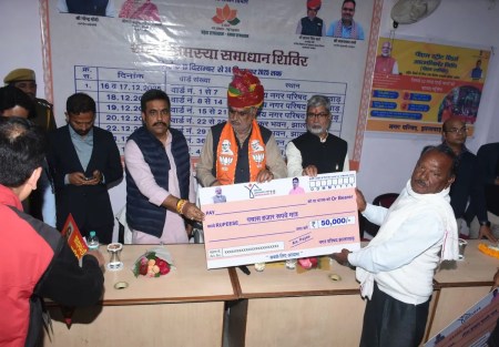 झालावाड़ नगरीय विकास एवं स्वायत शासन राज्य मंत्री झाबरसिंह खर्रा शुक्रवार को दोपहर बाद नगर परिषद में चल रहे समस्या समाधान शिविर में पहुंचे। शिविर में उन्होनेपीएमआवास व मुख्यमंत्रीजन आवास , निर्माण स्वीकृति सहित कई लोगों को पट्टे दिए। इस दौरान खर्रा ने आमजन की समस्याएं सुनी और उनके समाधान का आश्वासन दिया। खर्रा ने शिविर में 6 कृषि भूमि के पट्टे, 8 राजस्थान नगरपालिका अधिनियम की धारा 69ए, राज्य सरकार द्वारा प्रदत्त की गई छूट अनुसार 6 लीज होल्ड से फ्री होल्ड के, राजस्थान स्टेट ग्राण्ट एक्ट के तहत 12 पट्टे, 4 भवन निर्माण स्वीकृतियां, 12 लीज हस्तान्तरण प्रमाण पत्र, प्रधानमंत्री स्वनिधि योजना के तहत 12 लाभार्थियो को मौके पर आवेदन भरवाए जाकर ऋ़ण वितरण के लिए स्वीकृति आदेश दिए, 2 लाभार्थियो को प्रधानमंत्री आवास योजना 2.0 के तहत प्रथम किश्त के 50,000 रूपए का चेक उपलब्ध करवाया गया। इसके साथ ही स्वच्छ भारत मिशन 2.0 के तहत घरेलू शौचालय निर्माण के लिए 11 लाभार्थियो को प्रथम व द्वितीय किश्त का भुगतान किया । खर्रा ने नगर परिषद में पट्टे की संपूर्ण जानकारी मांगी इस पर आयुक्त नरेन्द्र कुमार मीणा व अधिशाषी अभियंता मनीषसिंह ने शिविर के दौरान उत्पन्न होने वाली समस्याओ के संबंध में था राजकीय भूमि नियमन (अतिक्रमण नियमन) के तहत पटटे की जानकारी दी।