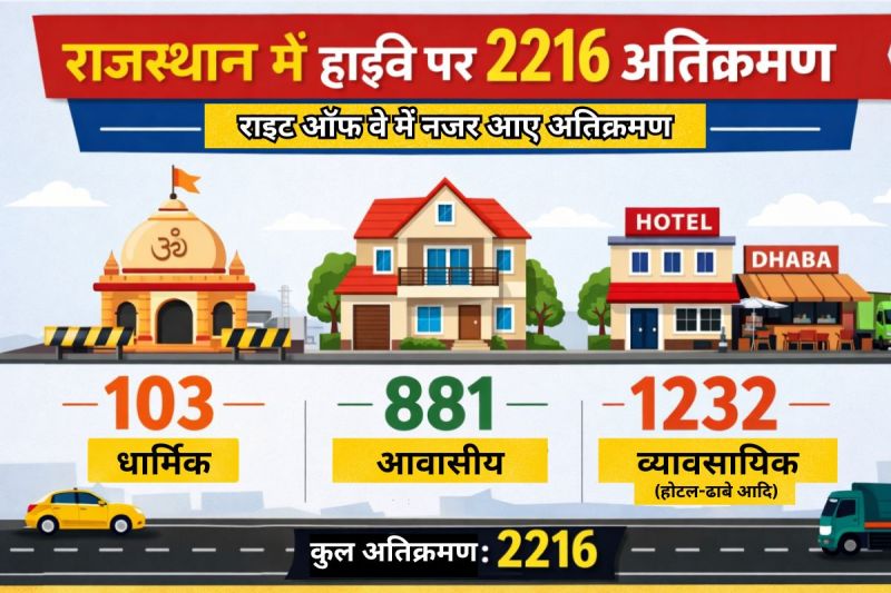 खंडपीठ के समक्ष रखे गए प्रारंभिक आंकड़ों के अनुसार राजस्थान में नेशनल हाईवे के राइट ऑफ वे में 2216 अतिक्रमण सामने आए हैं। इनमें 103 धार्मिक, 881 आवासीय और 1232 व्यावसायिक अतिक्रमण (होटल-ढाबे आदि) शामिल हैं। कोर्ट ने कहा कि ऐसे अतिक्रमण सड़क पर दृश्यता बाधित करते हैं।