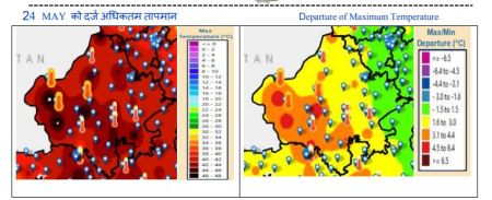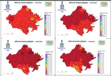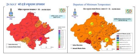 आगामी 72 घंटों में राजस्थान के दक्षिणी व पश्चिमी भागों में अधिकतम व न्यूनतम तापमान में और हल्की बढ़ोतरी (1-2 डिग्री सेल्सियस) होने की आशंका है। आगामी चार दिन राज्य के कई स्थानों पर हीटवेव से तीव्र हीटवेव ( 47 डिग्री सेल्सियस से अधिक) व कहीं-कहीं ऊष्णरात्रि (warm night) का दौर जारी रहने की आशंका है।