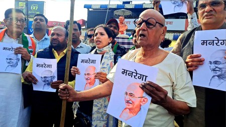 कांग्रेस नेता राजनारायण सिंह ने कहा कि गांधी कोई बोर्ड पर लिखा नाम नहीं है, गांधी खेत में खड़ा वो मजदूर है, जो काम मांगते हुए आंखों में आंख डालकर बोलता है। कांग्रेस नेता डॉ मुनीश मिश्रा ने कहा कि मनरेगा से राष्ट्रपिता महात्मा गांधी का नाम हटाना उनके सम्मान पर सीधा आघात है। इस अवसर पर कैलाश हरि पटेल, विकास व्यास, दीपक मुल्लू राठौर, प्रेमांशु जैन, शेख फरीद, मनोज मंडलोई, शब्बीर कादरी, आसिम पटेल, रमेश गुरबानी आदि कांग्रेस नेताओं ने प्रदर्शन किया।