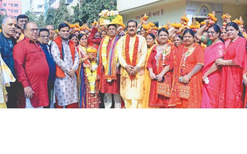 बांधाघाट के 144 वर्ष प्राचीन सत्यनारायण मंदिर से निकली भागवत महापुराण की विराट शोभायात्रा