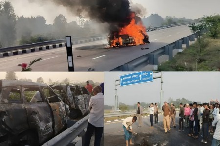 Purvanchal Expressway Crash Road Accident Follow-up: उत्तर प्रदेश के बाराबंकी जिले में बुधवार दोपहर पूर्वांचल एक्सप्रेस वे पर ऐसा दर्दनाक हादसा हुआ, जिसने मौके पर मौजूद हर व्यक्ति को झकझोर कर रख दिया। हैदरगढ़ क्षेत्र के डीह गांव के पास दो कारों की भीषण टक्कर के बाद लगी आग में एक ही परिवार के पांच लोगों मां और उसके चार बच्चों ने तड़प-तड़पकर दम तोड़ दिया। हादसे में पांच लोग गंभीर रूप से घायल हुए हैं, जिन्हें लखनऊ के अस्पताल में भर्ती कराया गया है। हादसे के बाद पूरे क्षेत्र में मातम सा छा गया और लोगों के दिलों में उस भयावह दृश्य की दहशत अब तक बनी हुई है।
