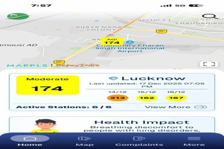 Air Pollution Lucknow: राजधानी लखनऊ में वायु प्रदूषण एक बार फिर चिंता का विषय बन गया है। केंद्रीय प्रदूषण नियंत्रण बोर्ड (CPCB) के आधिकारिक ऐप ‘SAMEER’ के अनुसार आज लखनऊ का एयर क्वालिटी इंडेक्स (AQI) 174 दर्ज किया गया है, जो ‘खराब’ (Moderate to Poor) श्रेणी में आता है। यह आंकड़ा सार्वजनिक डोमेन में उपलब्ध है और इसे ही सरकारी व आधिकारिक मानक माना जाता है।