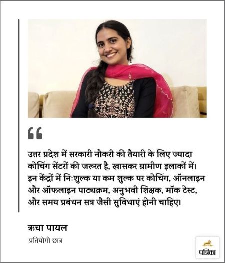 सवाल: क्या आपको लगता है कि उत्तर प्रदेश में सरकारी नौकरी की तैयारी के लिए अधिक केंद्रों या कोचिंग संस्थानों की जरूरत है? यदि हां, तो किस तरह की सुविधाएं वहां होनी चाहिए?