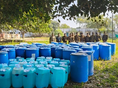 मुरैना. थाना रिठौराकलां पुलिस द्वारा अवैध शराब के निर्माण हेतु भण्डारित 14,520 लीटर ओ पी (स्प्रिट) कीमती करीबन 25 लाख की जब्त की गई। पुलिस के पहुंचते ही अंधेरे का लाभ उठाकर किराएदार व मकान मालिक दोनों फरार हो गए।