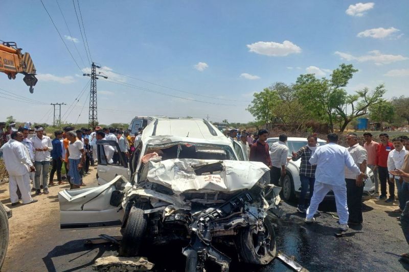 नागौर/हरसौर/भैरुन्दा. हरसौर के किसान तिराहे पर बुधवार दोपहर को तेज रफ्तार डम्पर ने कार को कुचल दिया, इस हृदय विदारक सडक़ हादसे में कार सवार तीन मासूम सहित 5 जनों की दर्दनाक मौत हो गई। 6 अन्य जने गंभीर घायल हो गए, जिन्हें अजमेर के चिकित्सालय में भर्ती कराया गया। यह सभी लग्जरी कार में सवार होकर हरनावां रानाबाई के सवामणी का प्रसाद चढ़ाने और दर्शन करने जा रहे थे।