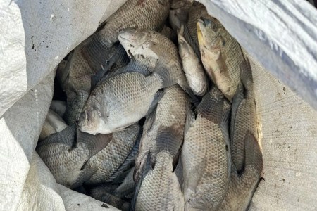 अनेक प्रजातियों की मृत मछलियां