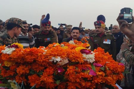 शहीद के 11 वर्षीय बेटे नवीन ने मुखाग्नि दी। हरिराम 13 राष्ट्रीय राइफल्स में हवलदार थे। वह 4 जनवरी को जम्मू -कश्मीर के बांदीपोरा में सड़क दुर्घटना में शहीद हो गए। शाम को शहीद का शव गांव में पहुंचा तो जन -समुह उमड़ पड़ा। भारत मां के जयकारे और हरिराम अमर रहे के नारे की गूंज दूर तक सुनाई दी। सैंकड़ों की संख्या में ग्रामीणों तिरंगा लेकर शहीद को अंतिम विदाई देने पहुंचे। दुकानदारों ने अपने प्रतिष्ठान बंद रखे। शहीद के 11 वर्षीय बेटे नवीन को तिरंगा सौंपा गया। इस दौरान 7 साल की बेटी वंदना भी मौजूद रही।
