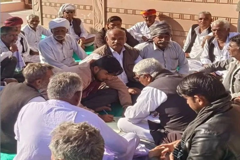 रूण गांव में सामाजिक सुधारों को लेकर बैठक करते ग्रामीण