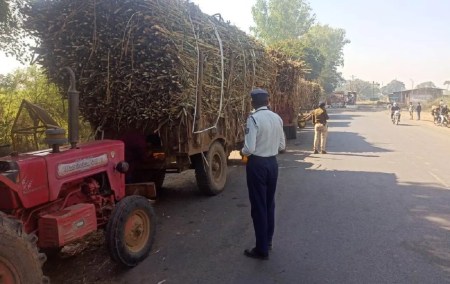 जिले में बढ़ती सडक़ दुर्घटनाओं में कमी लाने व यातायात व्यवस्था बनाए रखने एसपी डॉ. ऋषिकेश मीना के निर्देश पर यातायात व थानों की पुलिस टीम डबल ट्रॉलियों पर लगातार कार्रवाई कर रही है। साथ ही ट्रैक्टर-ट्रॉलियों में रेडियम रिफ्लेक्टर लगाए जा रहे हैं। क्योंकिपूर्व में ट्रैक्टर-ट्रॉलियों में बैकलाइट एवं रिफ्लेक्टर की कमी से शहरी एवं ग्रामीण क्षेत्रों में कई सडक़ दुर्घटनाएं घटित हो चुकी हैं। यातायात नियमों का उल्लंघन कर डबल ट्रॉली लगाकर गन्ना परिवहन करने वाले 65 ट्रैक्टर-ट्रॉली वाहनों के खिलाफ अब तक चालानी कार्रवाई हो चुकी है। एसपी मीना ने आमजन एवं वाहन चालकों से कहा है कि वे निर्धारित मानकों के अनुरूप ही गन्ना एवं अन्य कृषि उपज का परिवहन करें। यातायात नियमों का पालन कर स्वयं एवं दूसरों की सुरक्षा सुनिश्चित करें।