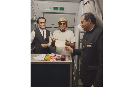 फ्लाइट में इकोनॉमी क्लास की सीट पर बैठे राघवेंद्र को क्रू ने बिजनेस क्लास में आमंत्रित किया। यह सिर्फ सीट बदलाव नहीं, बल्कि उनके सड़क सुरक्षा योगदान का सम्मान था। पूरे क्रू ने उनके कार्यों को सेलिब्रेट किया और एक प्यारा नोट सौंपा। राघवेंद्र ने इसे सपने जैसा बताया – आंखें नम, दिल गर्व से भरा।