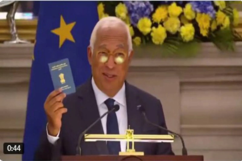 यूरोपीय परिषद के अध्यक्ष एंटोनियो कोस्टा ओसीआई कार्ड दिखाते हुए। (फोटो: स्क्रीन शॉट ANI Video)