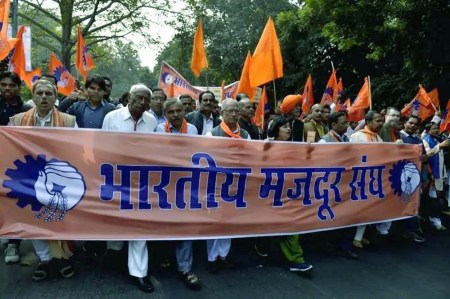 25 जुलाई 1955 को भारतीय मजदूर संघ की स्थापना भोपाल में हुई। संघ के प्रचारक दत्तोपंत ठेगड़ी को इसकी जिम्मेदारी सौंपी गई थी। इसके दो करोड़ 25 लाख सदस्य हैं। यह 6000 संगठित और असंगठित यूनियन्स और 42 महासंघों के माध्यम से पूरे देश का सबसे बड़ा श्रमिक संगठन है। 1996 से आईएलओ में बीएमएस प्रतिनिधि के रूप में जा रहा है। भामस ने वर्ग-संघर्ष की संकल्पना को अस्वीकार कर औद्योगिक परिवार का समवेती सिद्धांत अपनाया है।