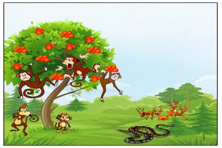 एक बार की बात है, एक बंदर ने स्वादिष्ट आमों से भरा एक पेड़ देखा। स्वादिष्ट आम देखकर उसके मुंह में पानी आ गया। उसने कु छ आम लिए और आमों का आनंद लेने के लिए एक पेड़ की शाखा पर बैठ गया। उन्हें चबाने के बाद आम के बीज फेंक दिए और चला गया। जैसे-जैसे समय बीतता गया, जहां उसने बीज फेंका वहां एक आम का पेड़ उग आया। जल्द ही बंदर ने पेड़ की खोज कर ली। उसने अपने सभी दोस्तों को पेड़ के बारे में बताया और दावा किया कि यह पेड़ उसका है। एक दिन भूखे हिरणों के झुंड की नजर उस पेड़ पर पड़ी। वे कुछ आम पाने की आशा से तेजी से दौड़े।