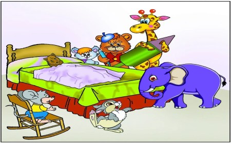 एक घने जंगल में, जहां हरे-भरे पेड़ और रंग-बिरंगे फूल थे, वहां एक प्यारा सा घर था। उस घर में एक हाथी, जिसका नाम गप्पू था, एक जिराफ, जिसका नाम लंबी गर्दन था, एक भालू, जिसका नाम भोलू था, एक खरगोश, जिसका नाम फुर्ती था और एक नटखट चूहा, जिसका नाम चिकू था, सब मिलकर रहते थे। एक दिन, बारिश के बाद, सभी दोस्त खेलने के लिए इक_ा हुए। गप्पू हाथी ने अपनी सूंड से पानी छिडक़ना शुरू किया, जिससे सब ठहाके लगाकर हंसने लगे। लंबी गर्दन जिराफ अपनी ऊंची गर्दन से पेड़ों के पत्तों को छू रहा था और सबको दिखा रहा था कि वह कितना लंबा है। भोलू भालू एक बड़े से बिस्तर पर आराम कर रहा था, जबकि फुर्ती खरगोश और चिकू चूहा उसके चारों ओर उछल-कूद कर रहे थे।वे सब मिलकर खूब मस्ती करते थे। वे एक-दूसरे का ख्याल रखते थे और हमेशा साथ मिलकर खेलते थे। उस दिन भी, उन्होंने मिलकर खूब खेल खेले और शाम को थककर उसी बड़े बिस्तर पर सो गए, सपने देखते हुए कि अगले दिन वे और क्या-क्या मजेकरेंगे।
