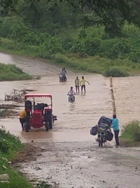 जंगला में 3 दिन से लगातार हो रही बारिश से बुधवार को क्वारी नदी का जलस्तर बढ़ गया। दोपहर के वक्त बागचीनी क्षेत्र से गुजरी क्वारी नदी के ऊपर बने रपटे के ऊपर पानी पहुंच गया। तकरीबन आधा से एक फीट तक पानी रपटा के ऊपर से बह रहा था। चूंकि इस रपटा से नंदपुरा, डाबरपुरा, बराहना, गुढ़ा चंबल, देवगढ़, ङ्क्षवडवा, पंचमपुरा, सरसैनी, उत्तमपुरा-ताजपुर सहित करीब दो दर्जन से अधिक गांवों के लोग आवागमन करते हैं। ऐसे में उनके निकलने का यह रास्ता बंद हो गया। लेकिन ग्रामीणों का दुस्साहस देखिए कि वह ट्रैक्टर-बाइक सहित पैदल ही दिनभर जोखिम उठाकर इस रपटा से निकलते रहे।