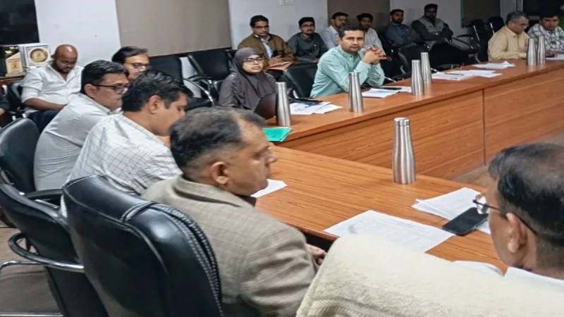 स्वास्थ्य भवन में आयोजित बैठक में चर्चा करते अधिकारी।
