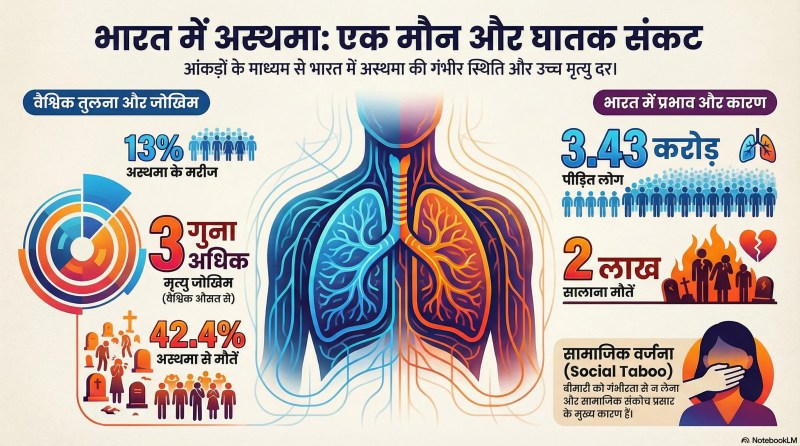 सबसे डराने वाली बात ये है कि भारत में अस्थमा से मौत का जोखिम वैश्विक औसत से 3 गुना अधिक है। इसके बावजूद भी हम लोग इसे गंभीरता से नहीं लेते। बता दें, भारत में लगभग 3.43 करोड़ लोग अस्थमा से पीड़ित हैं।